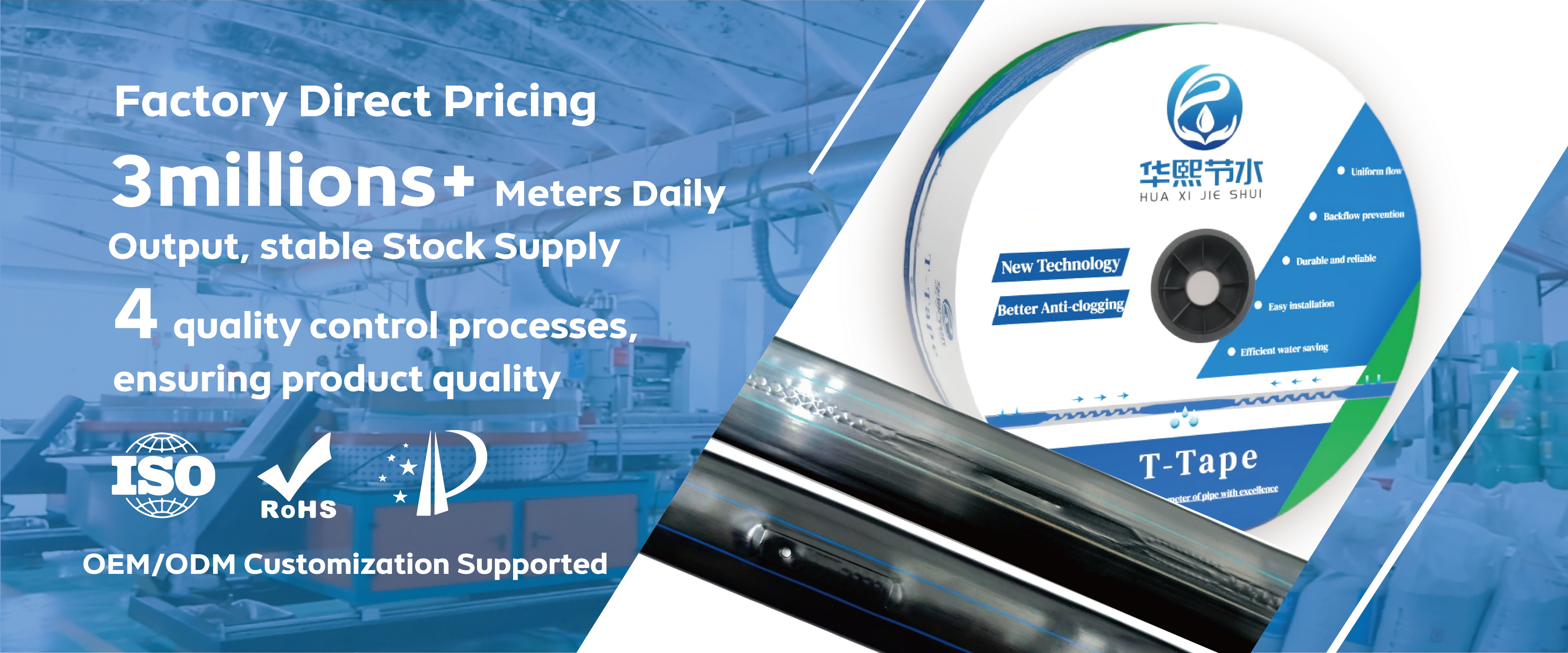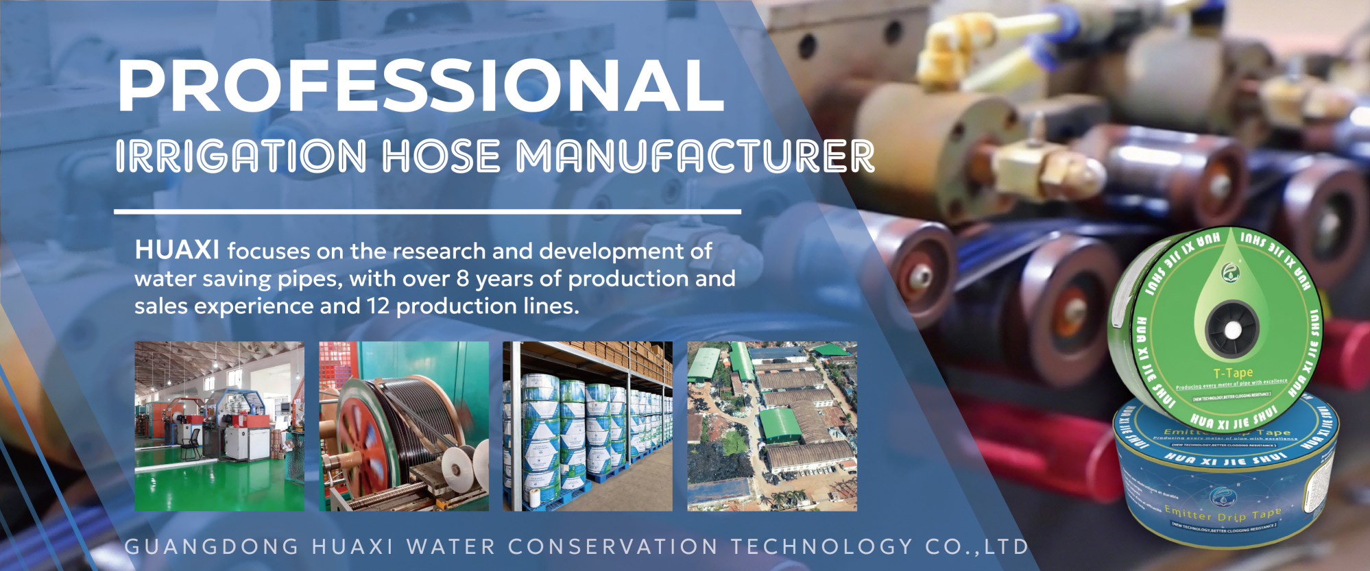 Guangdong Huaxi Water Conservation Technology Co., Ltd specializes in the research and development, production, and sales of water-saving hoses and pipes, committed to contributing to the agricultural industry chain. Headquartered in Zhanjiang City, Guangdong Province, we have exported over 1 million kilometers of high-quality irrigation hoses and pipes, supporting the modernization of agricultural irrigation for over 60 thousand hectares of farmland and orchards.
